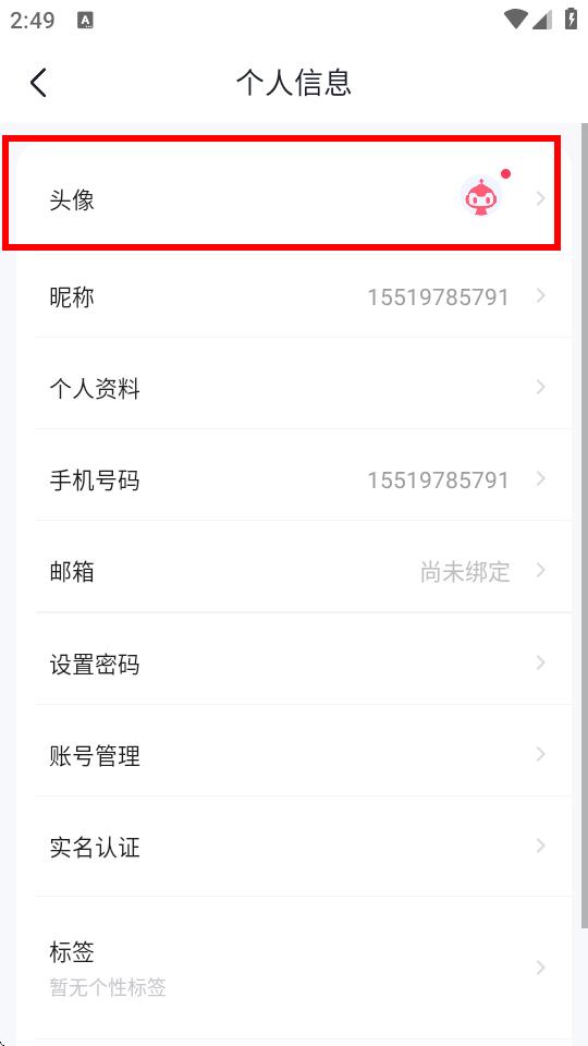 2、在个人页面中,点击头像区域进入个人信息页面。