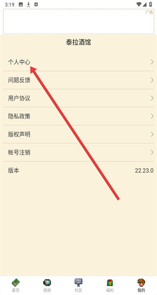 1、打开泰拉酒馆APP,点击右下角“我的”,进入个人页面。