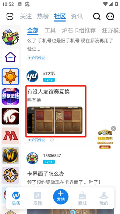 c.主打社区:炉石传说、符文之地、昆特牌、百闻牌、万智牌、影之诗、游戏王,云顶之弈