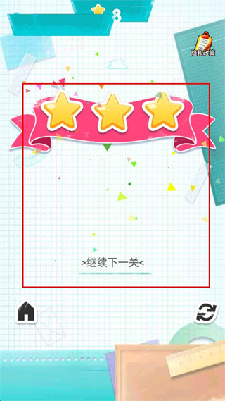 4、完成当前关卡的所有目标,获取对应的三星评价,点击继续下一关进入下一个关卡。