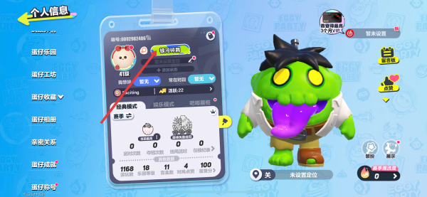 1、打开蛋仔派对游戏,进入游戏主界面,点击左上角自己的头像,进入个人信息页面。