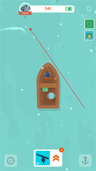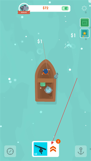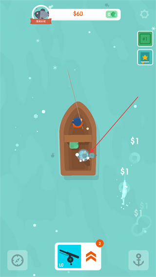 1、等待鱼钩钓到物品,获取金币如从$49增至$60。