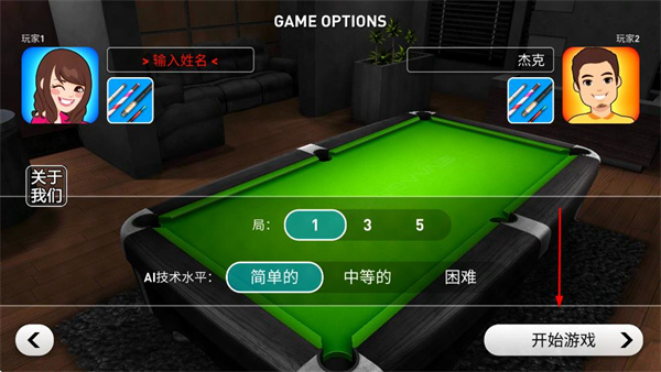 3、设置局数与AI技术水平,输入玩家姓名后点击开始游戏按钮。