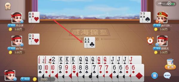 3、在选定要打出的牌型如示例中的AA后,点击该牌型所在区域,即可将这手牌打出到桌面上,参与本轮牌局竞争,推动游戏继续进行。