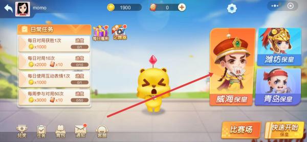 1、打开保皇游戏进入主界面,随意选择一个模式,再选择快速开始按钮,系统将自动匹配在线玩家,快速开启对局。