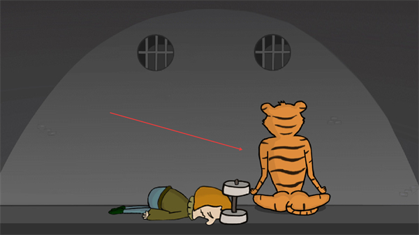 4、角色被关押,与老虎同处囚室,本轮关卡结束,需重新尝试。