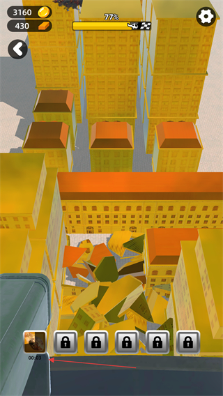 城市拆除是一款以建筑拆除为核心的休闲解压类作品,拥有逼真的物理效果与重力模拟,操控过程中可运用导弹及多种技能瞄准目标,通过精准打击完成摧毁任务,整体流程轻松休闲,允许反复使用技能破坏,但以更少次数完成目标能获取更多积分与奖励,进而解锁陨石、闪电、UFO等强力技能,带来酣畅淋漓的破坏体验。