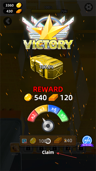 4、拆除进度达100%后,点击Claim领取金币与材料的奖励,完成本关挑战。