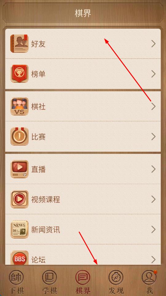 1、打开天天象棋游戏,进入游戏主界面,点击底部导航栏中的好友图标。