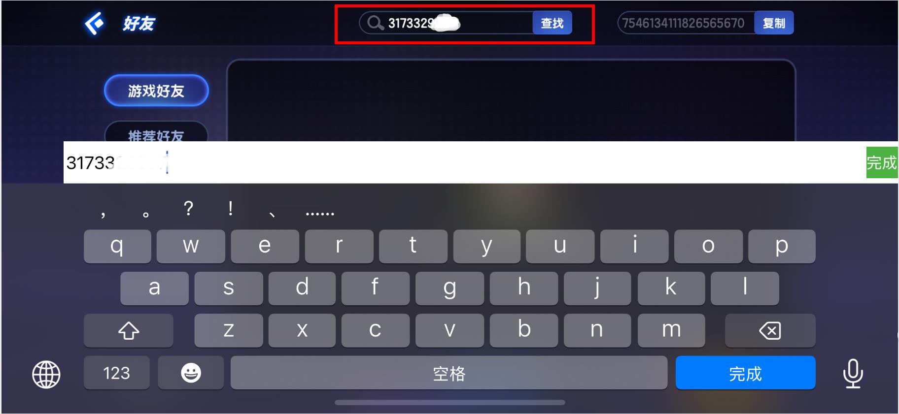 2、在好友页面,点击顶部的输入UID查找搜索框。