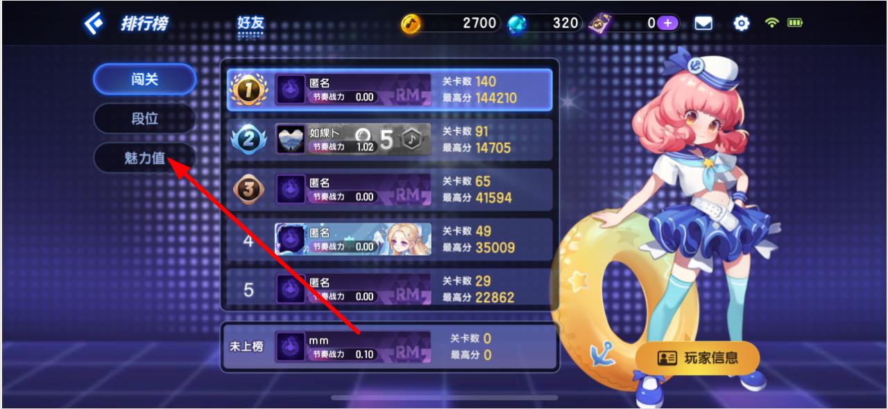 节奏大师怎么查看魅力值多少