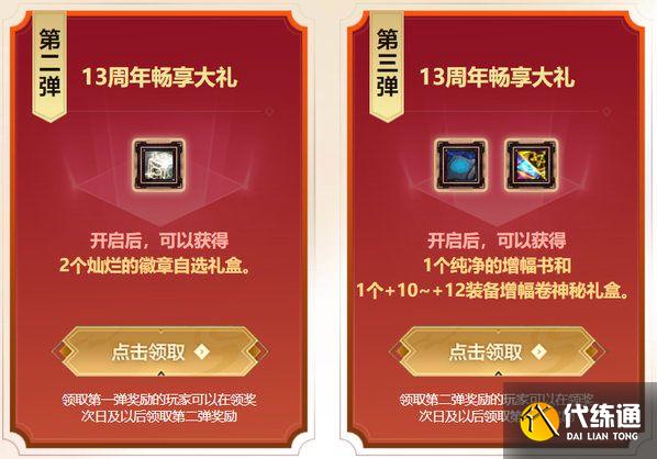 13周年庆畅享大礼的第一弹,希曼给大家准备的是100级史诗武器特选礼盒一个。
