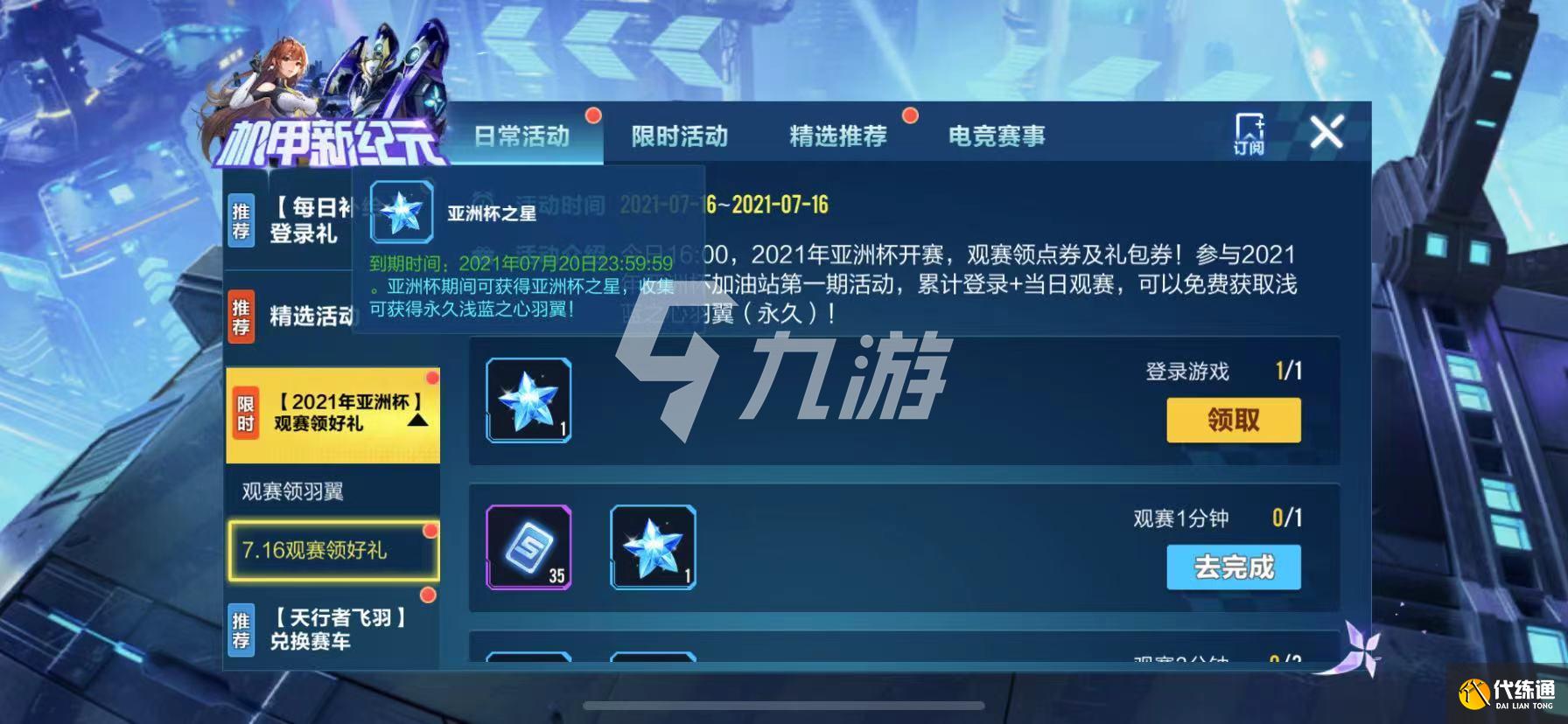 领取亚洲杯之星需要玩家们在7月16日当天观看亚洲杯开赛,观看亚洲杯是可以获取很多礼品的哦,玩家观赛一分钟可获得一个星星和35点券,观赛3分钟可获得礼包券和一个星星,以此类推获取亚洲杯之星的礼品会越来越多。