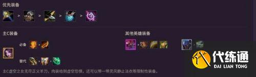 主c虚空之女无尽正义羊刀,肉装给到虚空恐惧,还可以带一带灵风静止法衣等限制性装备。