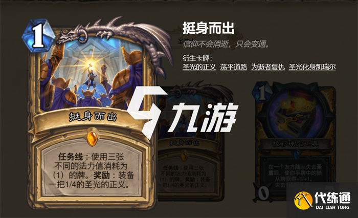 一阶任务:使用三张不同的法力值消耗为1的牌。奖励:装备一把1/4的圣光的正义