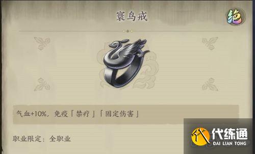 冰凛银环·尘:治疗效果+15%,对友方使用绝学时,40%概率附加|神护I」和「图元」状态,持续1回合。「神护I:物理免伤+20%「固元II」:法米免伤+20%