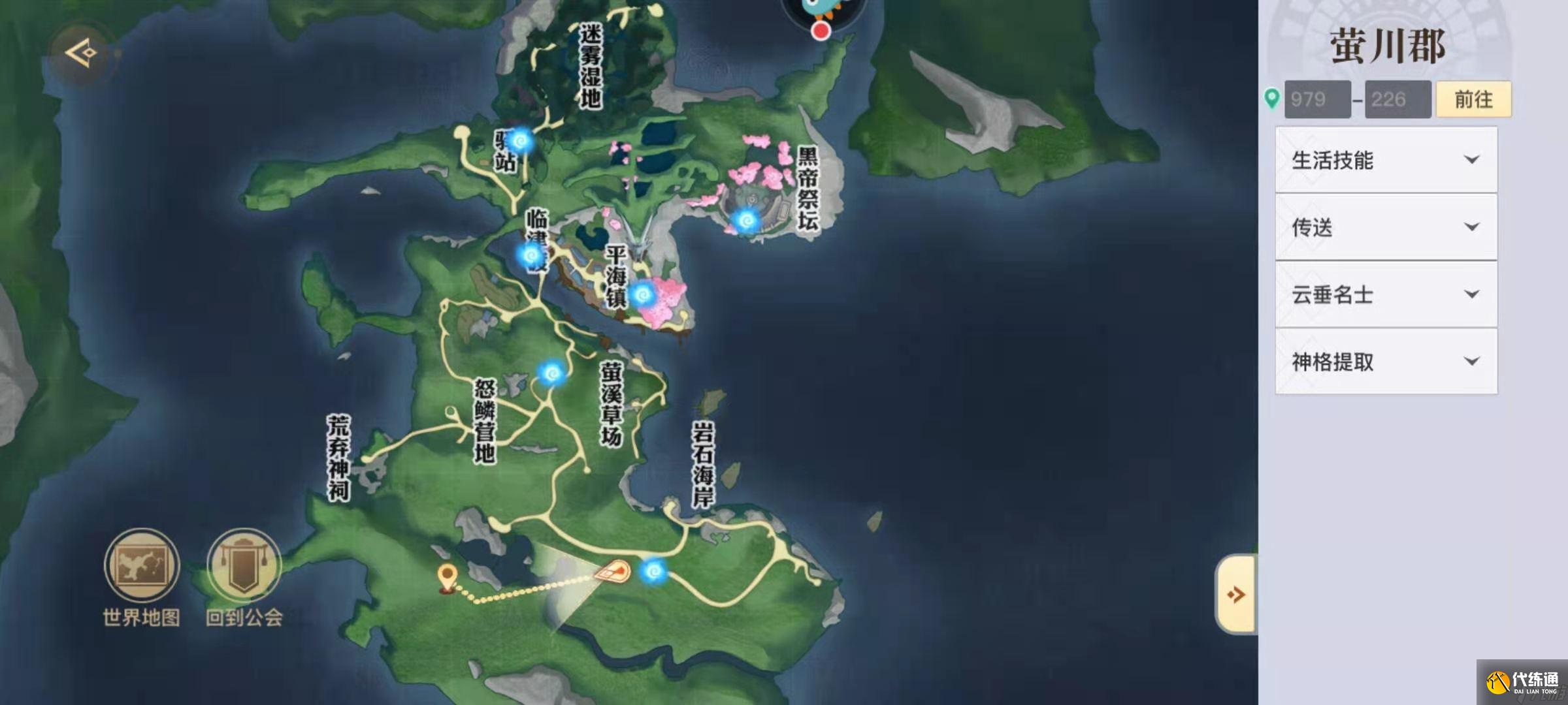 第四步寻找祭坛,这一步是很多玩家卡住的地方,第一个祭坛是瀑布祭坛,位置是在萤川郡下方的中间位置,也就是那条小河的发源点上,坐标是(718.215)。