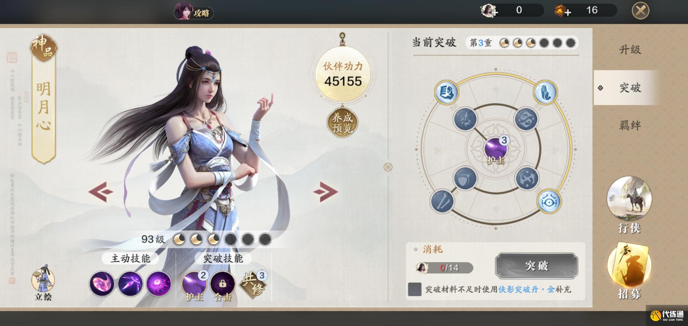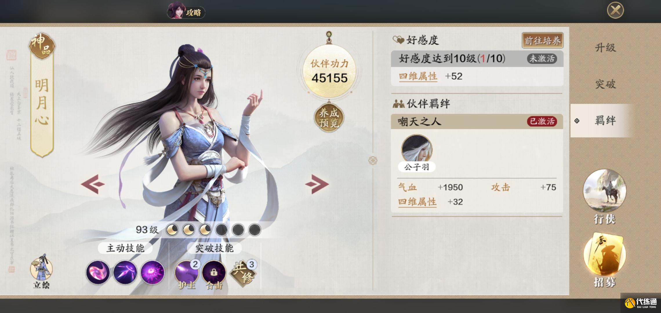 攻略明月心好感度,强烈推荐使用明月心手记碎片,可在朝天宫、伏龙谷等各种挑战本中获得,每周获取上限是八个。只要日积月累,就会达到明月心最顶级好感度。