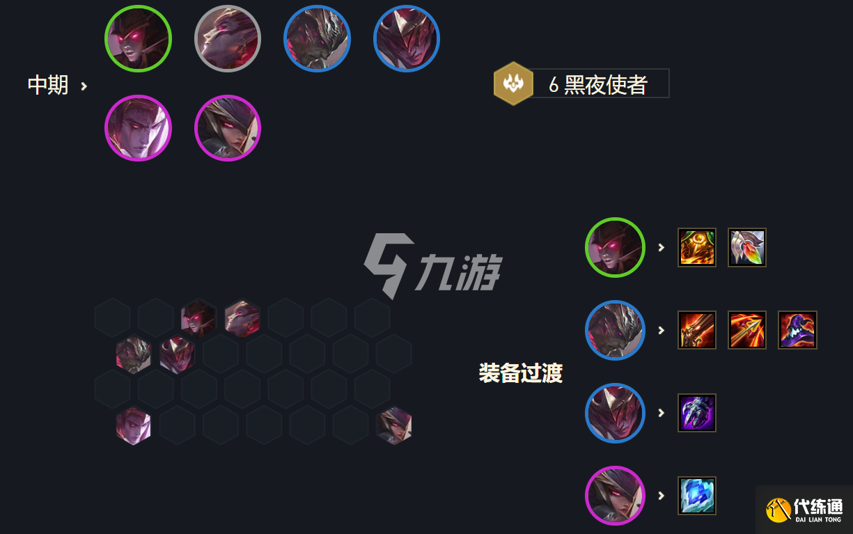 开局首抢攻速,亚索的装备火炮和飓风是关键,最好能稍微卖点血拿装备。这版本3- 6有光明装备,40血以下有低保,连败亚索很容易-波翻盘,所以前期掉点血千万不要慌。亚索有两件套,可以考虑光明装备给厄斐琉斯拿,厄斐琉斯也是这套阵容的一个关键输出点。前期推荐3哨兵3神盾或4黑夜过渡。
