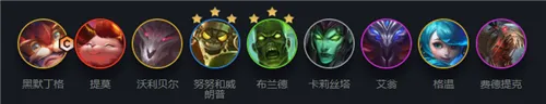 因为努努三费,所以阵容在2-1的时候需要去找三丧尸,使阵容直接在前期就具有极强的输出能力,因为阵容的思路是由高费卡英雄大发明家、狗熊、格温来提升阵容的输出能力以及控制能力,因此需要阵容快速过渡来使阵容优先到达八九人口来找大发明家。
