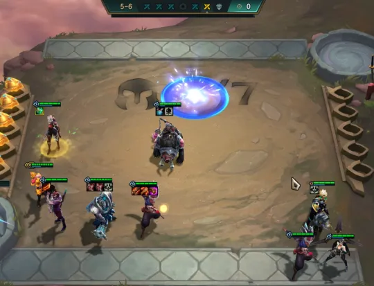 但对局有时候也看运气,摩昂这局就非常非常难受,外面没有玩亚索的,但是咱们亚索哥就不来,从4-5到5-6亚索就一直是6只,但比较欣慰的是阵容有2个黑夜转职,勉强稳定血量。通常在5-3亚索还没三星就会被疯狂入血。摩昂5-6这里站位失误,被丧尸大眼一下满入,血量见底。