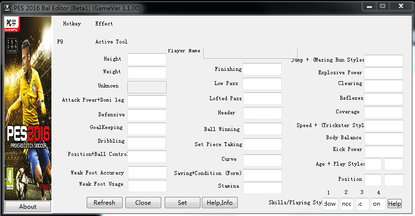 实况足球2016生涯模式修改器是一款来自外网的同名游戏修改器,通过它,玩家可以设定球员的能力值,身高体重年龄,比赛风格和特技等数据,获得更加符合自己需要的人物。暂时只要英文版,感兴趣的玩家可以先来体验一把。