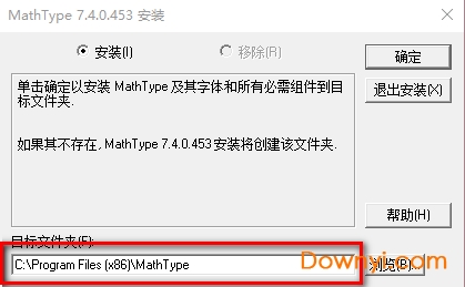 3、选择“安装”然后点击“确定”,一般安装位置都是在【c:programfiles(x86)mathtype】