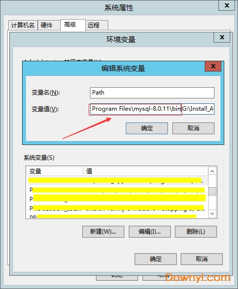 2、配置环境变量,将mysql目录下的bin目录添加到系统变量path中,如下图: