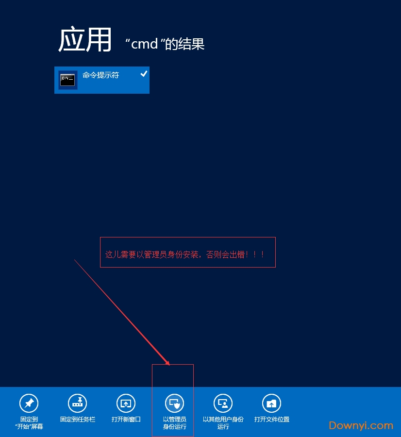 5、使用安装命令进行安装,安装完成后进行初始化在安装时,必须以管理员身份运行cmd,否则在安装时会报错,会导致安装失败的情况,如下图: