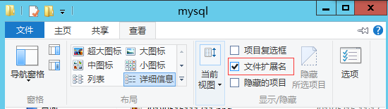 3、在系统窗口的“查看”中将“文件扩展名”勾上,便于确保my.ini文件扩展名正确性,如下图: