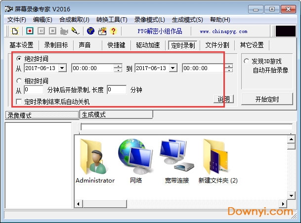 6、在“定时录制”设置中,可以设置软件自动开始录制的时间和自动结束录制的时间,还可以设置在录制完成后,自动进行关机操作;