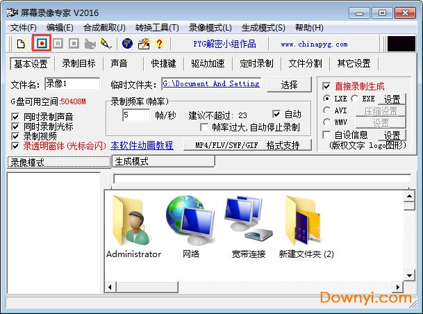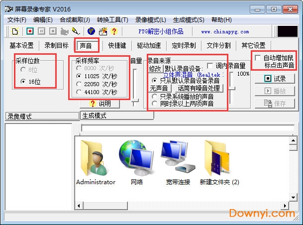 录制时可以设置是否同时录制声音,是否同时录制鼠标。