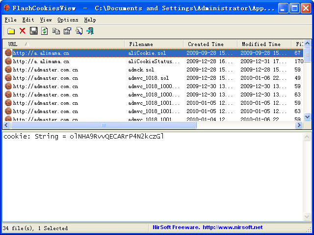FlashCookiesView是一个FLASH COOK。IES查看软件,它可以显示浏览器中Flash组件(本地共享对象)所创建的cookies文件。你也可以选择一个或多个cookies文件,复制他们到剪切板,保存他们为文本/网页/xml文件或者删除他们。有需要的朋友可以来下载试用使用!