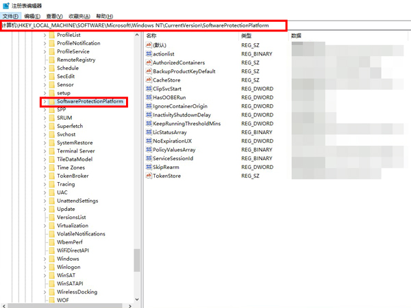 2、在注册表文件列表中找到SoftwareProtectionPlatform文件,然后进行点击。