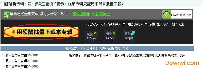 ②、用多地址批量解析功能passport.flvcd.com 可以一次提交多个地址,实现自助批量解析下载。