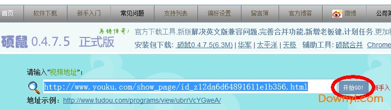 访问 FLVCD首页,将刚才复制好的专辑页面地址粘贴到框框里,点“开始GO”按钮: