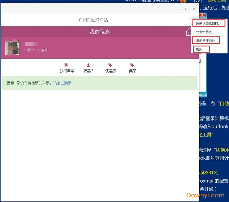以下是给大家演示下载微信公众号“广州东站汽车站”中的个人中心页面。