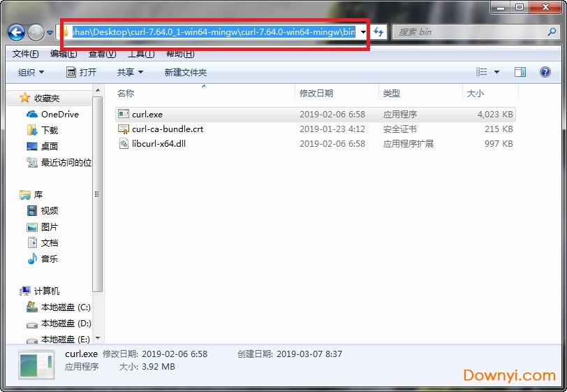 2、找到该文件目录下的bin子文件(bin即二进制文件,又称可执行文件), 复制文件地址: