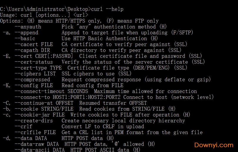 4、打开CMD,然后输入 curl --help ,如果显示如下, 就代表成功了。