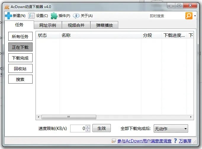 AcDown动漫下载器是一个运行在Windows/Linux上的免费、开源、专业的下载器框架。它界面简洁,使用方便,通过插件体系支持下载包括acfun、Bilibili、优酷、土豆、YouTube、爱漫画等多达百余个网站的视频和漫画资源。软件还提供了任务管理/视频合并/弹幕离线播放/挂机下载/自动更新等众多特色功能。