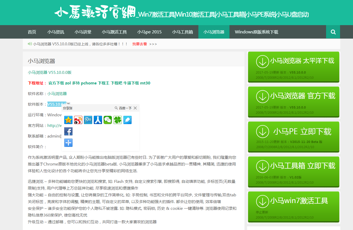 作为系统激活明星产品, 众人期盼小马能推出电脑版浏览器已有些时日。 为了答谢广大用户的厚爱和殷切期盼, 我们隆重向您推出基于Chrome原版本地优化的小马浏览器beta版。 小马浏览器秉承了小马追求卓越品质的一贯精神, 其精简, 迅捷的使用体验和人性化设计的各个功能将会让您充分享受精彩的网络生活。